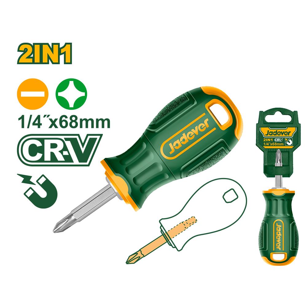 Κατσαβίδι 2 σε 1 σετ Μέγεθος:PH2+SL6.5 Μήκος: 68mm Πάχος λαιμού: 6.35mm Υλικό: Cr-V Εξάγωνος λαιμός Συσκευασία: Πλαστική λαβή